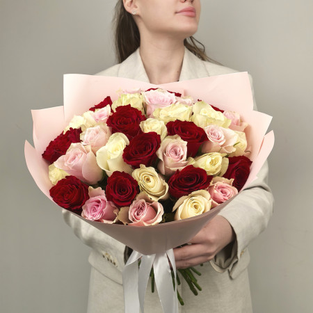 Букет из 35 фирменных роз микс